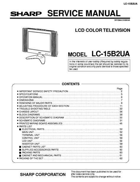 At present you are looking regarding an Sharp Lc 15b2ua Lcd Tv Service Manual example that we provide here in some type of document formats such as PDF, Doc, Strength Point, and also images that will make it easier for you to create an Sharp Lc 15b2ua Lcd Tv Service Manual yourself. For a clearer look, you are able to open a few examples below. Each of the illustrations about Sharp Lc 15b2ua Lcd Tv Service Manual on this website, we get from a number of sources so you can create a better file of your own.